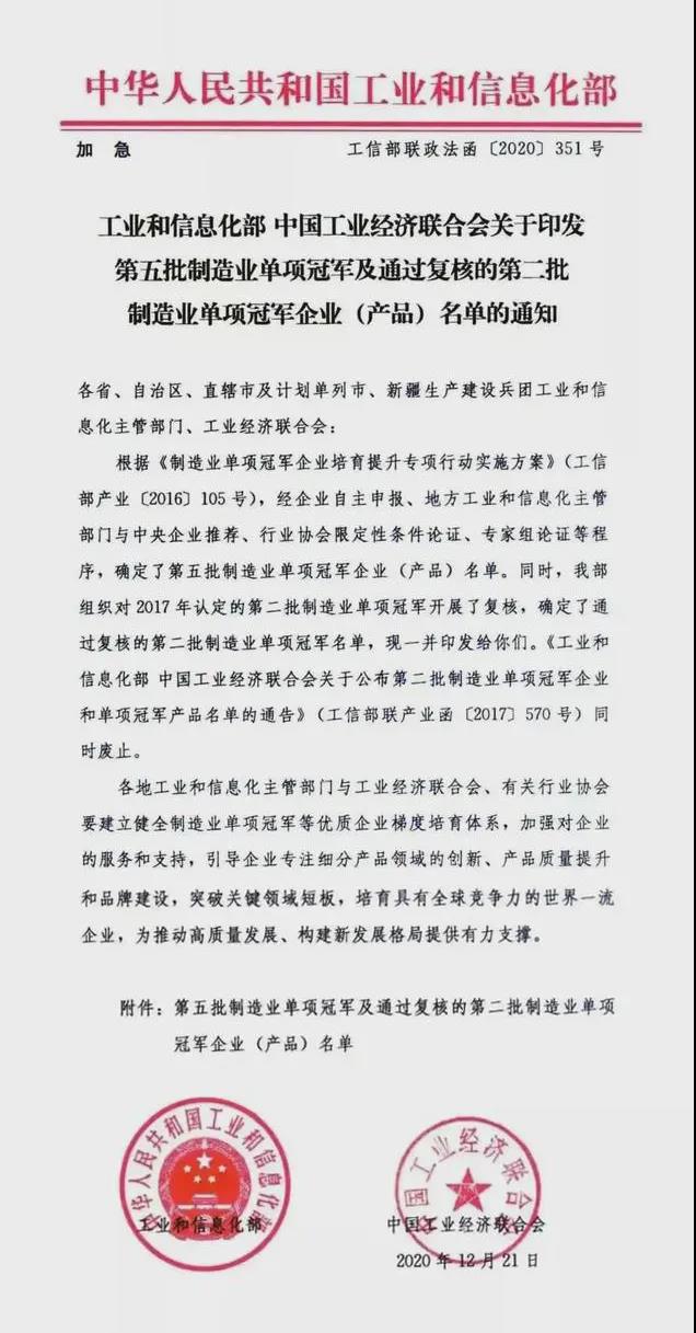 近日,工業(yè)和信息化部、中國工業(yè)經(jīng)濟聯(lián)合會公布了第五批制造業(yè)單項冠軍企業(yè)(產(chǎn)品)名單,建華建材榮膺“制造業(yè)單項冠軍示范企業(yè)”稱號。