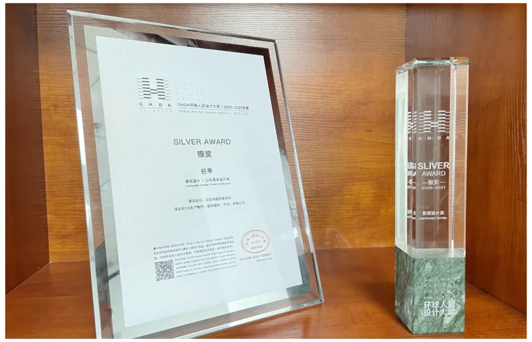 作為對(duì)城市景象的一種解讀與再生,從嘈雜紛亂的舊城背景環(huán)境中挖掘新的可能性,砼亭不僅榮獲“2021 IPA國(guó)際房地產(chǎn)大獎(jiǎng)-上海最佳公共建筑五星獎(jiǎng)”,更是斬獲“2020-2021年度環(huán)球人居設(shè)計(jì)大獎(jiǎng)-公共景觀設(shè)計(jì)類銀獎(jiǎng)”。