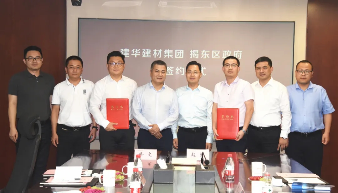 5月25日,建華建材集團與揭陽市揭東區(qū)人民政府舉行裝配式建筑產(chǎn)業(yè)基地項目簽約儀式。揭東區(qū)委書記方烽,區(qū)委副書記修文,市招商引資辦副主任、中德金屬生態(tài)城黨工委書記、管委會主任林仲龍;建華建材集團董事長王剛、總裁助理兼投資發(fā)展辦主任汪峰、惠州建華副總經(jīng)理趙勇、礦產(chǎn)事業(yè)部副總經(jīng)理石柏峰等領(lǐng)導(dǎo)出席簽約儀式。