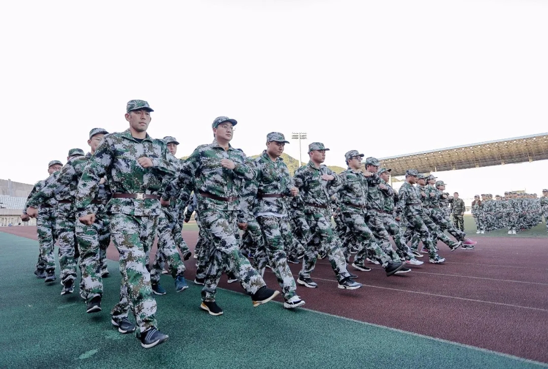 到達參訓地點,學員們迅速調整角色,端正態度,以飽滿的激情參加了分組儀式。16支連隊紛紛上臺展示風采,用激昂的口號和創意的造型,將會場氣氛帶向高潮。