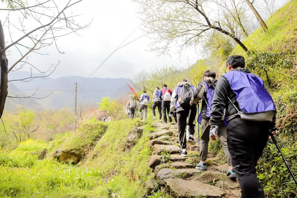 吳越古道為五代十國時期吳越(杭州臨安)與南唐(宣城寧國)的主要通道,一路溪流陪伴,云霧繚繞。但同時,長達十幾公里的路程,路窄坡陡,跌宕難行。此次拓展的第二天便是徒步穿越吳越古道,體悟徽商吃苦耐勞、堅持執著的精神。